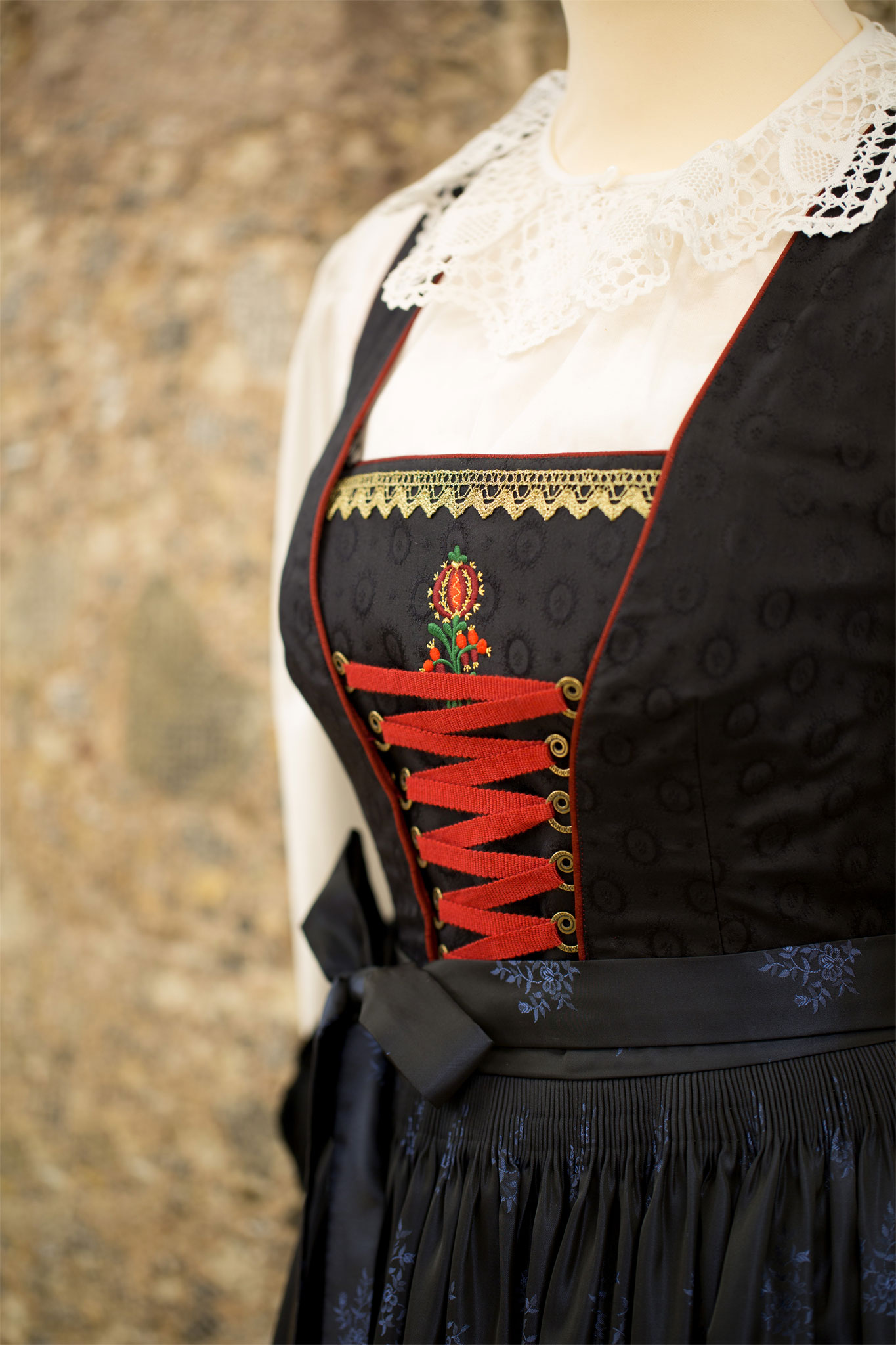 Der Einsatz hochwertiger Stoffe bei Bevorzugung naturnaher Materialien, die den lokalen Ursprung und Naturbezug erkennen lassen, und die einzigartige Verarbeitung sind bei den Talschaftstrachten unabdingbar. So wird jede Damentracht im Tiroler Heimatwerk zu einem wunderbaren Unikat, welches an Generationen weitergegeben wird. Wunderschöne Festtags- und Werktagstrachten werden zu verschiedensten Anlässen, Familienfeiern bis hin zum schönsten Tag im Leben, getragen.